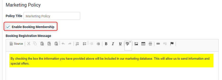 Booking Engine > Booking Process Options > Marketing Policy