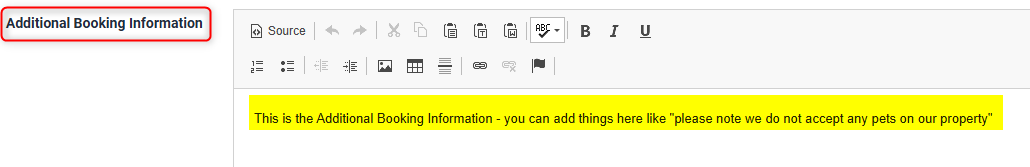 Additional Booking Information - highlighted in Yellow