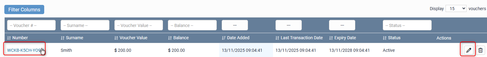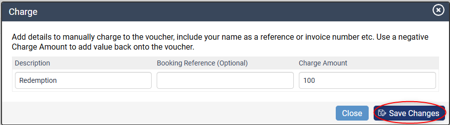Enter details of the transaction, a reference number (optional) and the amount to deduct off the voucher > save changes