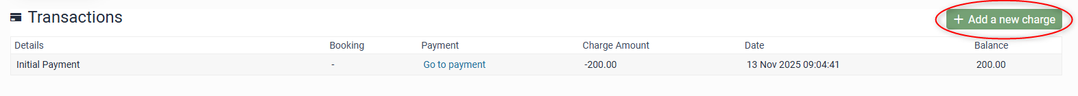 To redeem a voucher on behalf of the guest, scroll to Transactions and click Add a new charge