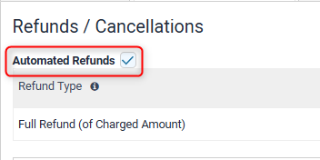 If you are using a Smart Payment Gateway, you can select to enable Automated Refunds for cancellations (refund types must be configured to enable this).