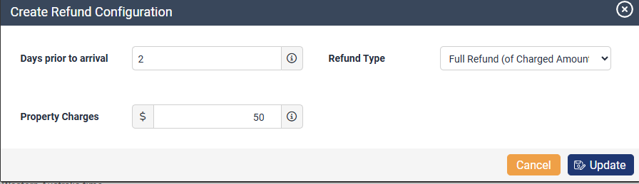 Enter in the number of days prior to arrival and the refund type. The options are:
