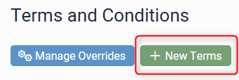 The Terms & Conditions Overrides allow you to override the default terms with another set of terms for selected rates on certain dates. For example, you may have a more restrictive policy over peak season dates.