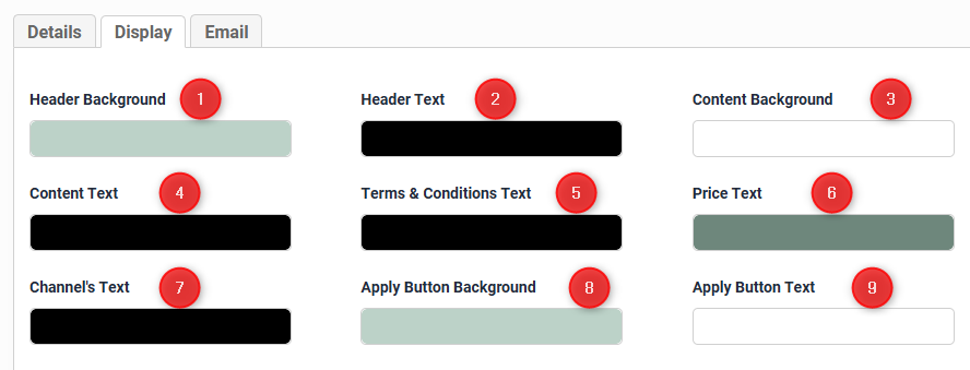This will bring up the widget settings. This is divided into three parts - Details, Display and Email: