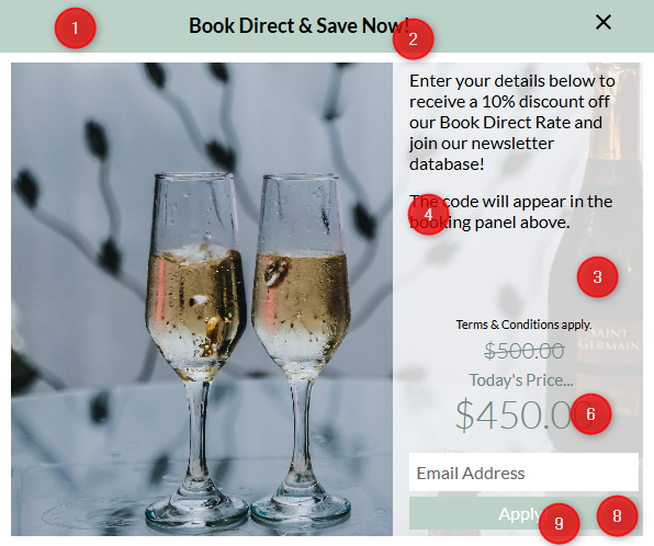 The Why Book Direct widget is an interactive tool that showcases that the best rates are on the website for the property. By offering an OTA price comparison and highlighting the discounted website rate, the widget is designed to grow direct bookings and build up the email marketing database for the property.