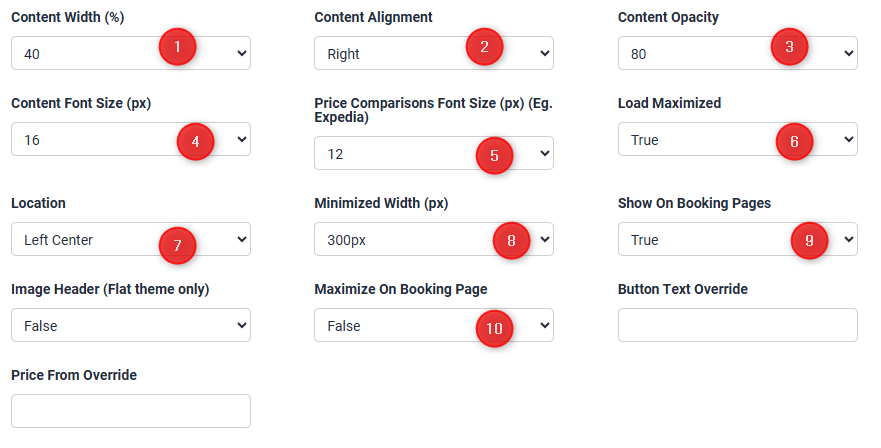6) Load maximization gives the option to pre-load the Widget to display in full on the home page (False) or keep it minimised until clicked on (True).