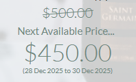If all of today's rooms are sold out, the widget will display the Next Available Price instead: