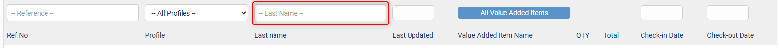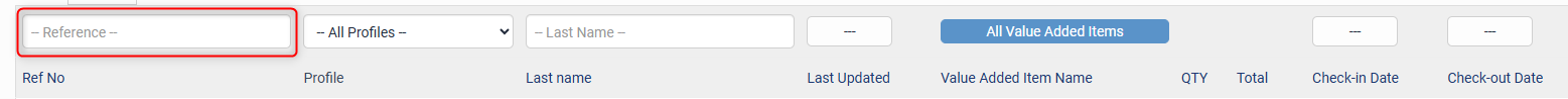 This field allows you to search by most basic and specific filter, using the unique booking reference number. Partial reference number searches will display relevant results.