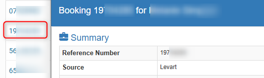 Clicking the reference number will open the relevant booking details: