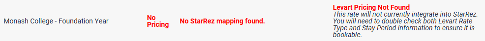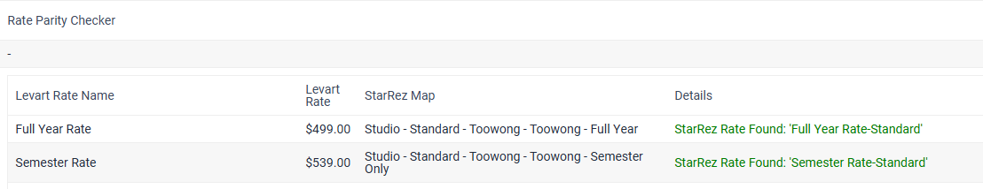 A correctly mapped rate with a match in StarRez will display in green, like the below example:
