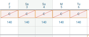 Any closed out dates will display like so: