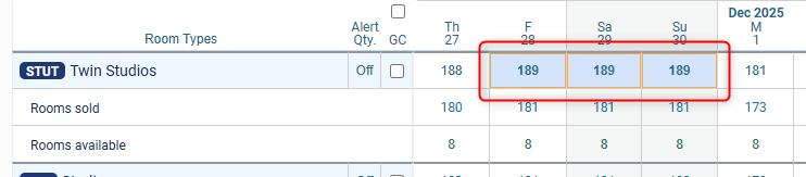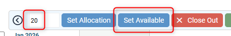 - In the toolbar - type in the number of rooms available, then click Set Availability