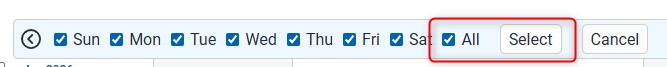 - The days of the week will appear in the toolbar, click All and then Select