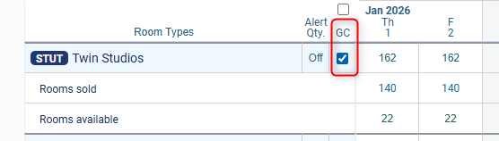 - Next to the room you are updating, click the GC (Global Change) box: