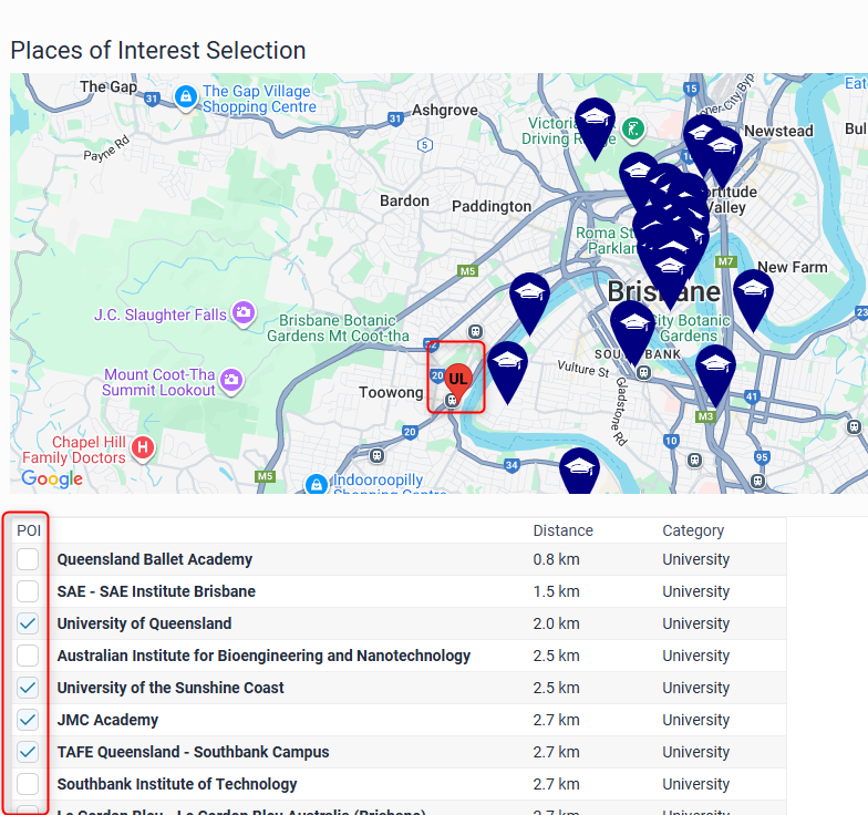 Levart’s Places of Interest (POI) page allows the property to apply Universities that are located close to your property.