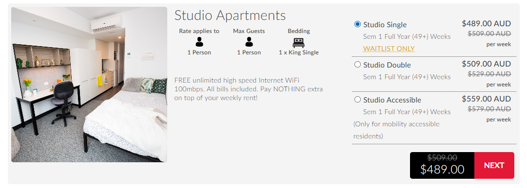 This will permit the student to select the room type within the category with the attribute which suites their requirements. It also permits the property to effectively up-sell by offering attributes at different pricing levels.