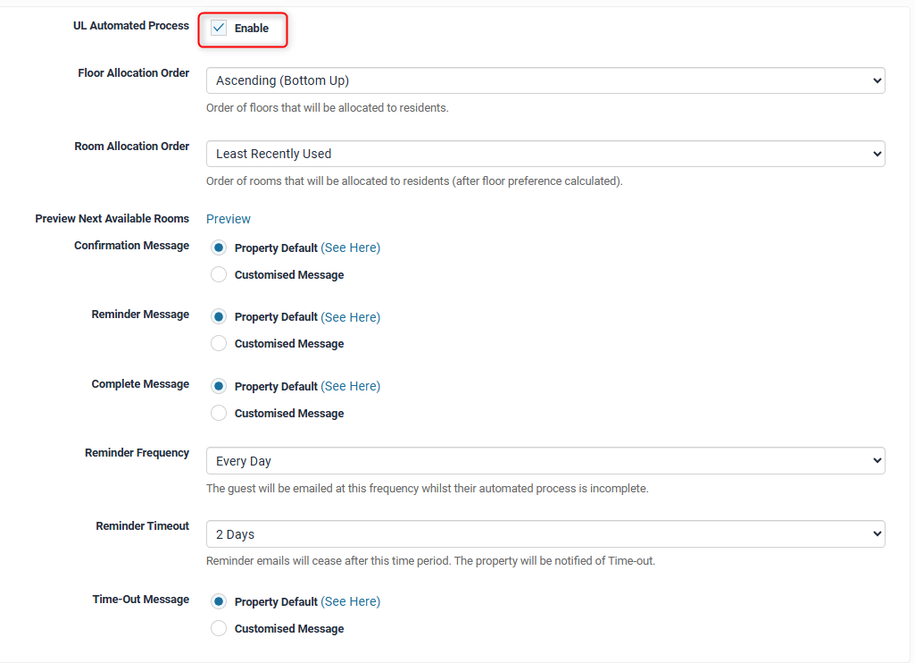 Tick the enable box for UL Automated Process and select the desired settings > Submit