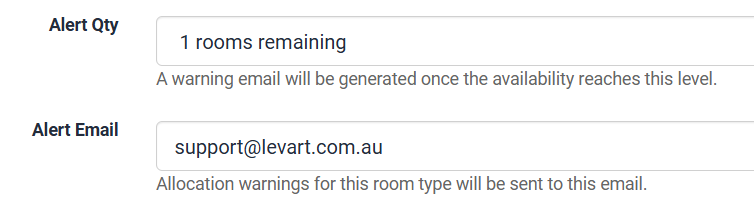 Alert Qty & Alert Email - By setting an “Alert Qty”, you will receive an alert email when you are down to your last rooms remaining. You can specify the email address these will go to.