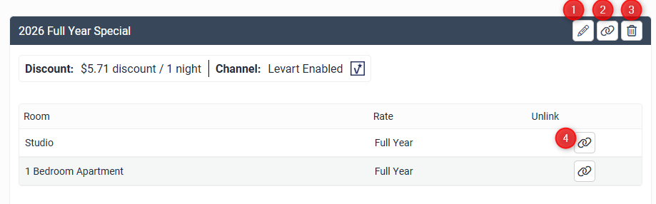 One special can include multiple Room Types which are all applying the same discount to a weekly price.