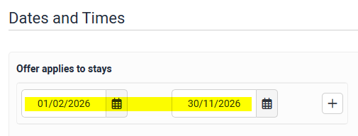 Offer Applies to Stays - These are the dates that the student can stay - enter the dates as the same from and to dates that are set in the rate type.