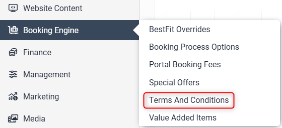 Terms and Conditions are attached to your rate types and display your payment/deposit and cancellation policies to the guests making bookings on your website.