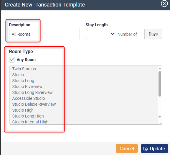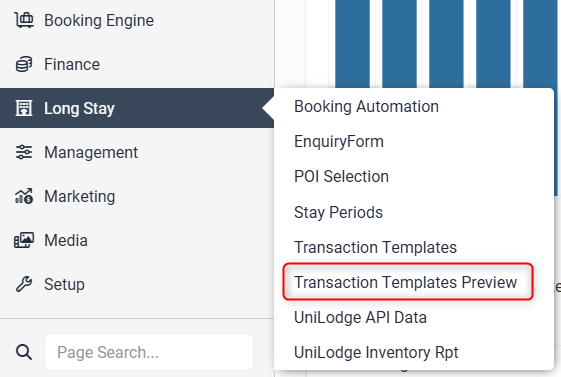 Transaction templates are required to be set up correctly for booking automation to work. Locate the page under Long Stay > Transaction Templates