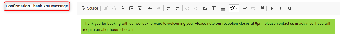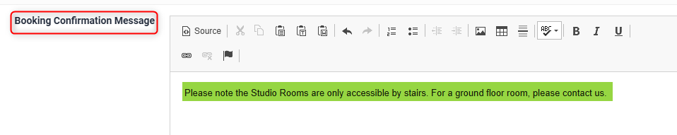 Rooms > Properties> Booking Confirmation Message