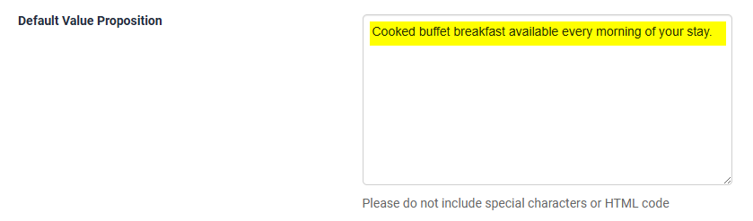 Rates > Click on the name of the rate > General tab > Default Value Proposition:
