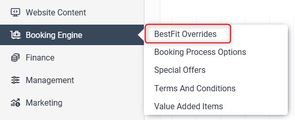 To access the page go to Booking Engine > BestFit Overrides