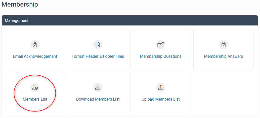 From the Membership page, you can add, edit, and delete individual members by clicking on Members List: