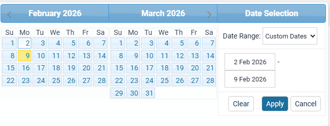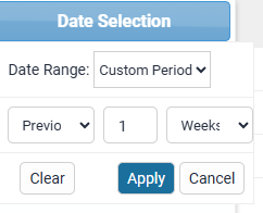 Selecting Custom Period from the Date Range dropdown allows you to select Next or Previous Day, Week or Month filters.