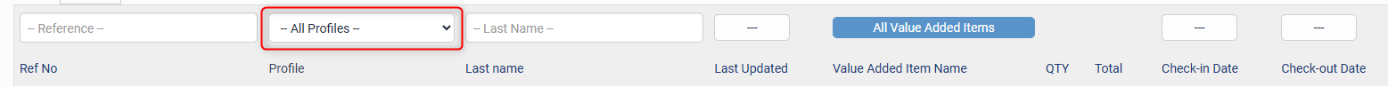 The Profile field allows you to filter bookings by Client Profiles or Promo Codes. You can sort by all Promo Codes or all Client Profiles, or narrow your results to a specific one.