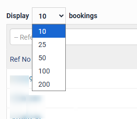 When performing a search, you can choose to display up to 200 bookings per page, this is adjusted by clicking on the dropdown box next to the word display.
