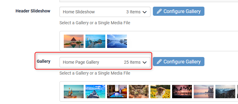 *This is the gallery that is inserted into your Home Page text. It is separate to your Header Slideshow outlined above.