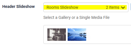Go to Website Content > select the page you would like to assign a header image/s to. Scroll to the Header Slideshow section. Use the dropdown to select a gallery that you have created.