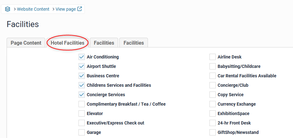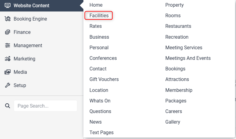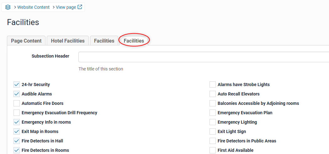 The Section Title allows you to change the title of the facilities page. This will also be the name displayed on the menu tab.
